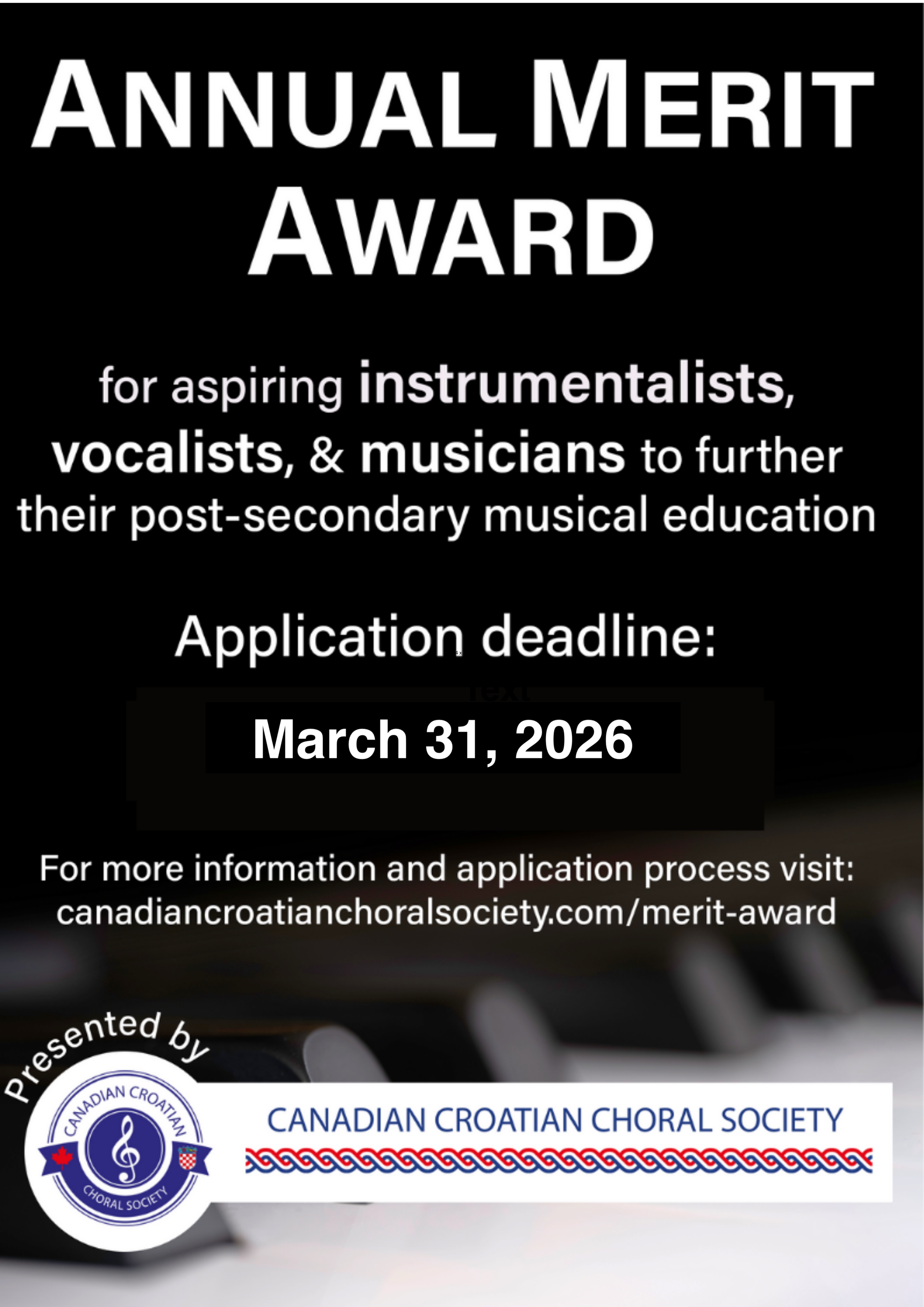 Each year, the CCCS proudly awards a $2,000 Merit Award to support students pursuing full-time post-secondary music studies. The award is open to graduating Grade 12 students and post-secondary music students continuing their studies in recognized music programs.